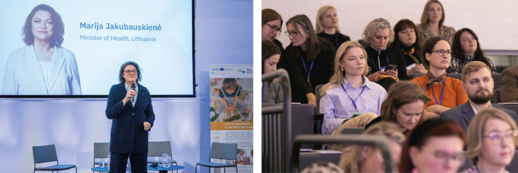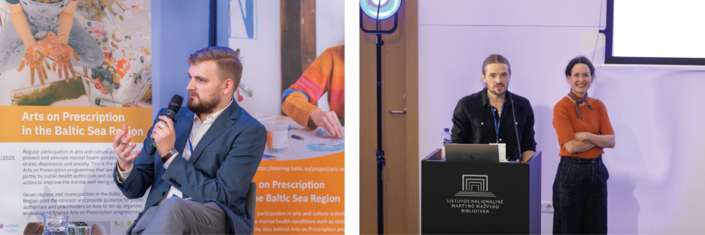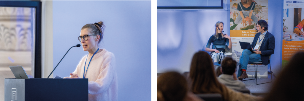 The day culminated in a forward-looking panel discussion, moving the conversation from “what is” to “what could be.” Bea Walker (National Academy for Social Prescribing, UK) led a discussion centered on expanding interventions and integrating the Art of Prescribing into the broader social prescribing framework, with the UK being highlighted as a frontrunner in this regard. Anna Enemark (Director of the Danish Cultural Institute) introduced the “Cultural First Aid Kit,” framing aesthetic practice as a tool for building mental resilience during crises. Atis Egliņš-Eglītis (Deputy Mayor of Cēsis) delivered a powerful message to municipal leaders: “Culture is democracy, economy, education, and health.”, while Neringa Grigutytė (Ministry of Health, Lithuania) provided the crucial link to national health policy. She discussed the reality of integrating social prescribing into national strategies and the arguments needed to convince health ministries to embrace arts-based interventions. As the concluding address for the conference Dr. Ülla-Karin Nurm (NDPHS Secretariat) shared the project’s core policy recommendations, urging a shift from “pilot mode” to embedding arts-based approaches into mainstream mental health care pathways. “By incorporating AoP into mental health strategies, we can achieve a triple return on investment—boosting wellbeing and social connectedness, increasing productivity, and supporting local economies. This is not just about culture or creativity. It is about designing smart, sustainable public health policy that recognises the social determinants of health and invests in prevention rather than cure. Across the Baltic Sea Region, we have the evidence, the partners, and the infrastructure. What we need now is the political will to embed this approach within national frameworks.”, concluded Dr. Nurm.